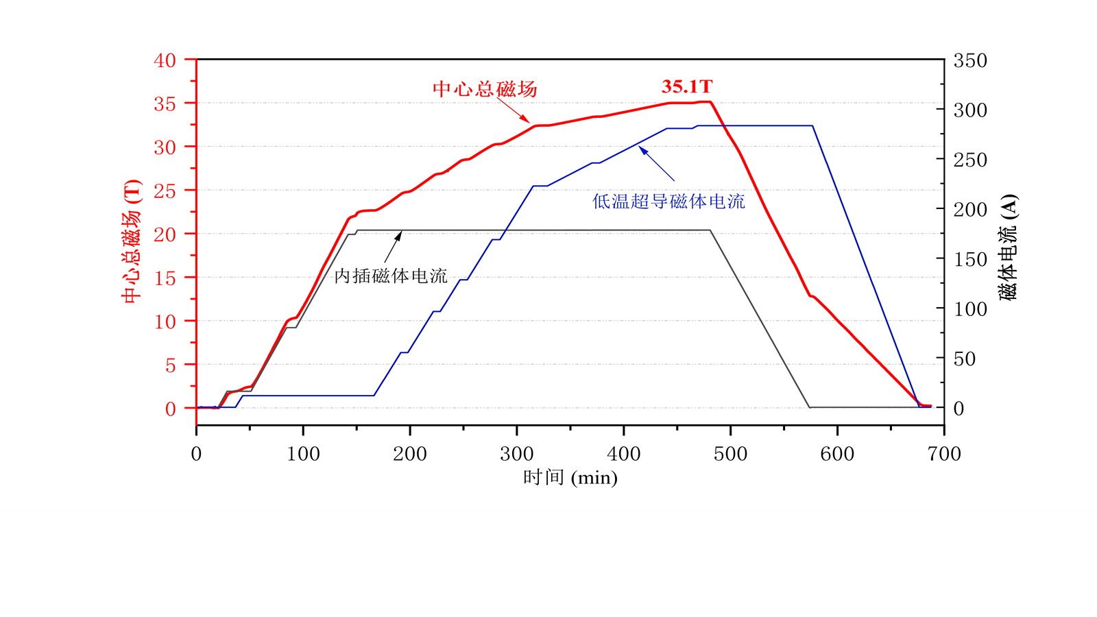 团队运用万匝级高场磁体多物理场协同优化方法与高应力调控工艺,有效解决了低温高场下的应力集中、屏蔽电流效应、多场耦合效应等难题,大幅提升磁体在极端工况下的力学稳定性与电磁性能。该磁体励磁至35.1特斯拉,稳定运行30分钟后安...