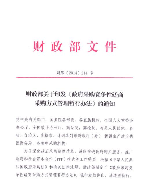 [国家] 财政部关于印发《政府采购竞争性磋商采购方式管理暂行办法》的通知