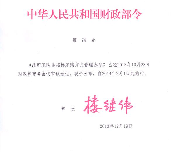 [国家] 财政部令第74号《关于政府采购非招标采购方式管理办法》