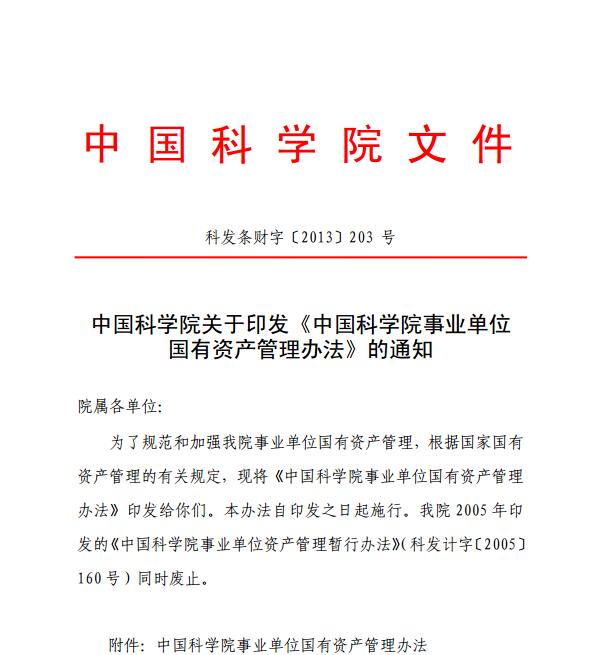 [中科院] 中国科学院关于印发《中国科学院事业单位国有资产管理办法》的通知