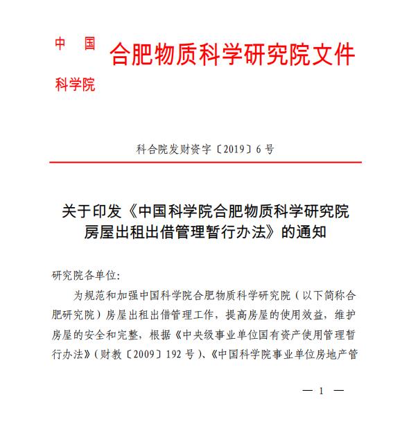 关于印发《中国科学院合肥物质科学研究院_房屋出租出借管理暂行办法》的通知.pdf