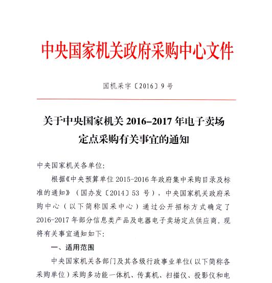 [国家] 关于中央国家机关2016-2017年电子卖场定点采购有关事宜的通知