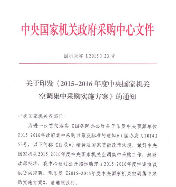 关于2015-2016年度中央国家机关空调集中采购实施方案的通知.pdf