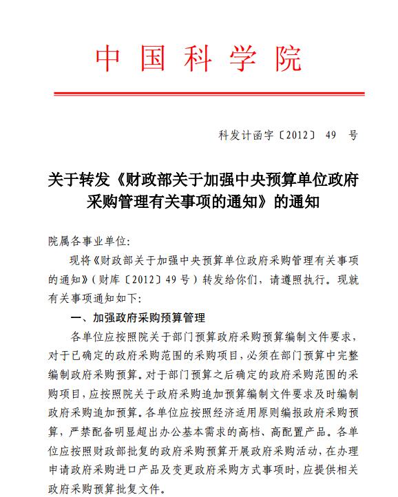 关于转发《财政部关于加强中央预算单位政府采购管理有关事项的通知》的通知