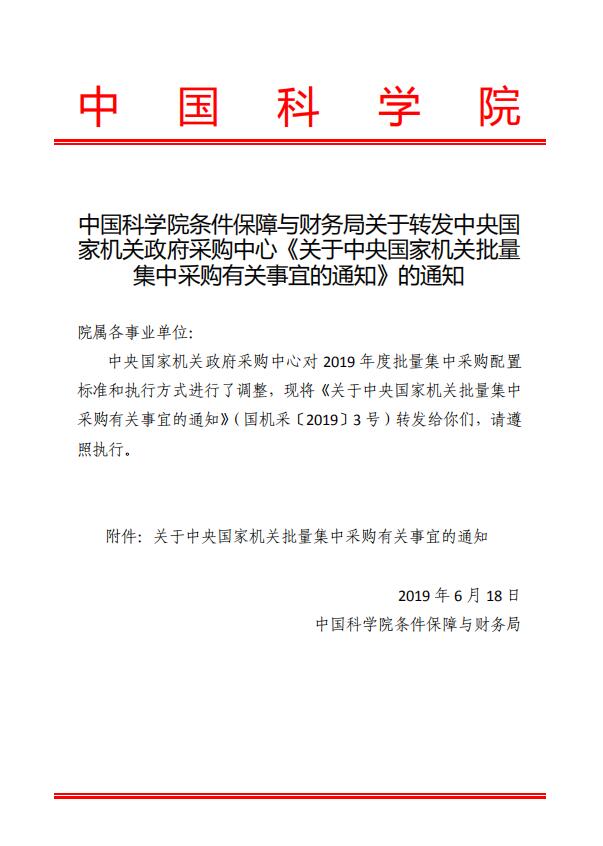 中国科学院条件保障与财务局关于转发中央国家机关政府采购中心《关于中央国家机关批量集中采购有关事宜的通知》的通知.pdf