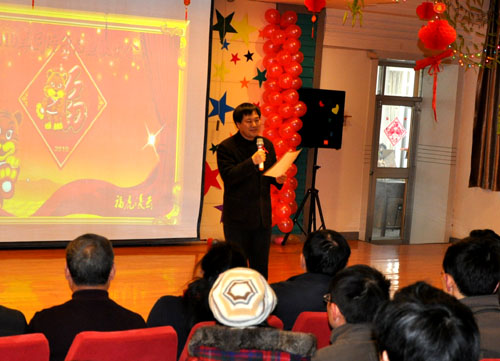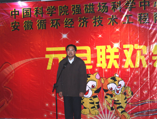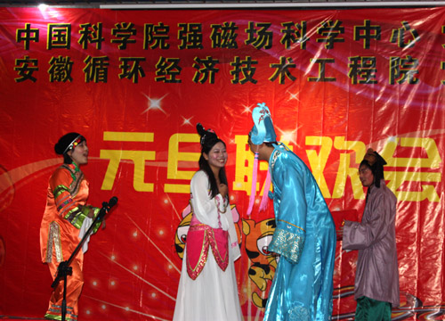 12月30日,中科院强磁场科学中心和安徽循环经济技术工程院联合举办的2010年新年联欢会在循环院隆重举行。强磁场中心主任匡光力致辞。他说,2009年是辉煌的一年,合肥研究院取得了众多重要的研究成果,其中稳态强磁场工程项目按计划向前推进,院地合作也取得了一定的成绩,对大家一年来付出的辛勤劳动表示衷心的感谢。他希望全体职工继续努力工作,加强强磁场中心与循环院的合作,做好科技成果转移和产业化工作。随后联欢会正式开始。整场节目气氛热烈,高潮迭起,欢声笑语不断,洋溢着喜庆的节日气氛。拉丁舞激情四射,霹雳舞动感十足,葫芦丝独奏婉转悠扬,情歌对唱深情款款,古装小品《唐伯虎追秋香》令人捧腹大笑,相声《我的儿子》诙谐幽默后让人深思,戏曲联唱精彩迭出,让观众领略到戏曲艺术的无穷韵味;游戏抽奖环节台上台下积极互动,体现了“大联欢”的特色。