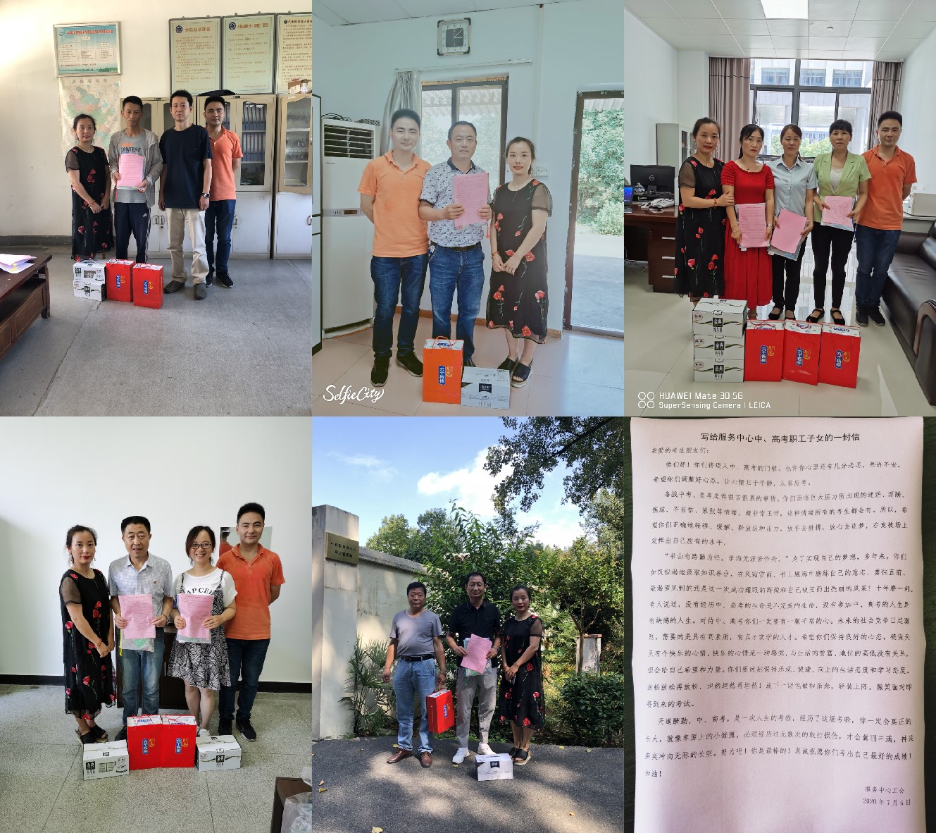 一年一度的中、高考即将来临,今年的高考受疫情影响姗姗来迟,更是给考生和家长带来了无形的压力。为舒缓考生心情,7月6日,服务中心工会组织向参考职工子女送关爱、鼓励和祝福,为参加2020年中、高考的9名职工子女送上了慰问品及风油精、湿巾、考试用品等,并用“写给服务中心中、高考职工子女的一封信”表达了对职工家庭的关心,对孩子们的真诚祝福,预祝他们能够“高中榜首”,梦想成真。