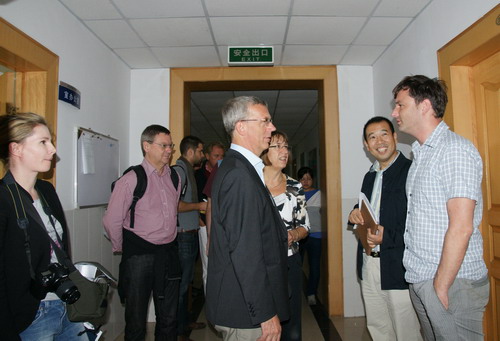 在安徽光机所,刘文清所长向来访的客人表示热烈的欢迎并简要介绍了安光所的发展历史和主要研究领域,特别是近年来与德国科技界在项目合作、人才交流等方面的情况和进展;环境光学中心主任谢品华研究员向德国客人介绍了安光所在环境监测技术方面的研究工作、成果以及提升我国城市环境监测质量中所发挥的重要作用的情况。出于对我国环境问题的特别关注,记者们对安光所研究领域非常感兴趣并就环境监测技术、效果、产业化、对北京奥运会、上海世博会的贡献度以及对国家提高环境质量、节能减排方面的措施、建议及影响等诸多问题与科学家进行了对话和交流,记者们还饶有兴致地参观了相关实验室和科技人员自主研制的系列环境监测仪器等。在参观过程中,德国记者们还遇见了在安光所做博士后研究的德国留学生安德列斯,并同他进行了亲切交谈。