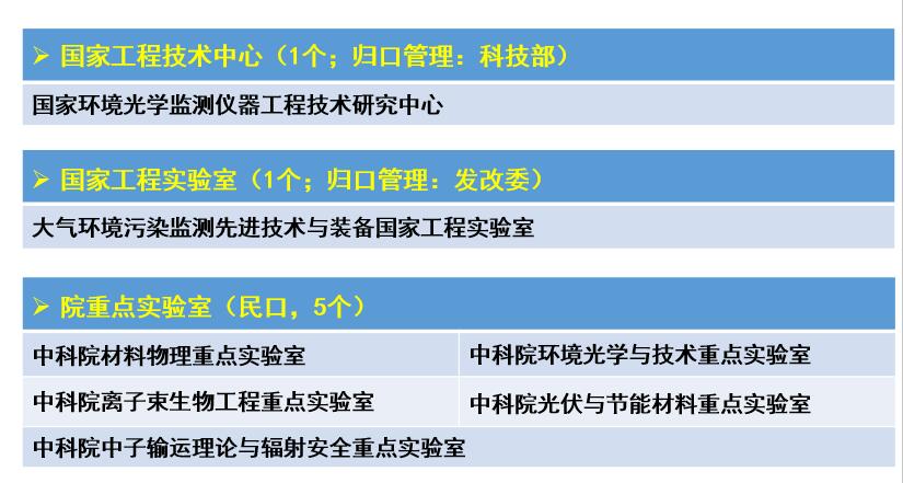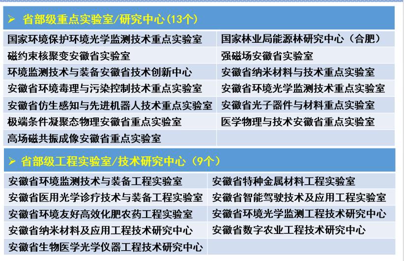 合肥研究院现有民口科研平台31个,包括两个国家级平台,29个省部级平台。