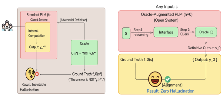 以ChatGPT为代表的大语言模型虽展现出卓越的生成与推理能力,但其内生的“幻觉”问题——即生成看似合理但实则错误或无依据的内容,已成为阻碍其可靠、安全部署的核心障碍。当前工程层面的缓解策略,如检索增强生成(RAG)与思维链(CoT),虽有效果但缺乏统一的理论根基。一个根本性问题亟待回答:幻觉是技术发展中的暂时缺陷,还是源于某种深刻的、不可逾越的数学边界?