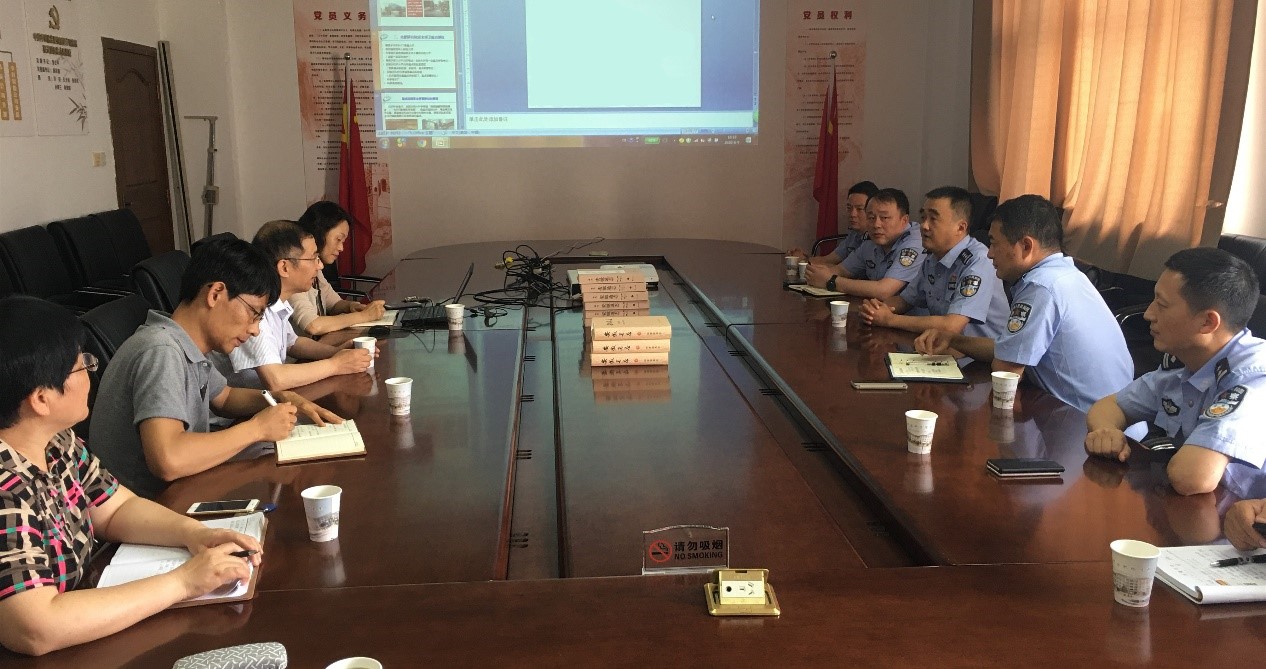 6月9日下午,合肥市公安局蜀山分局政委杨子铭、副局长兼井岗派出所所长李俊翔一行6人来科学岛