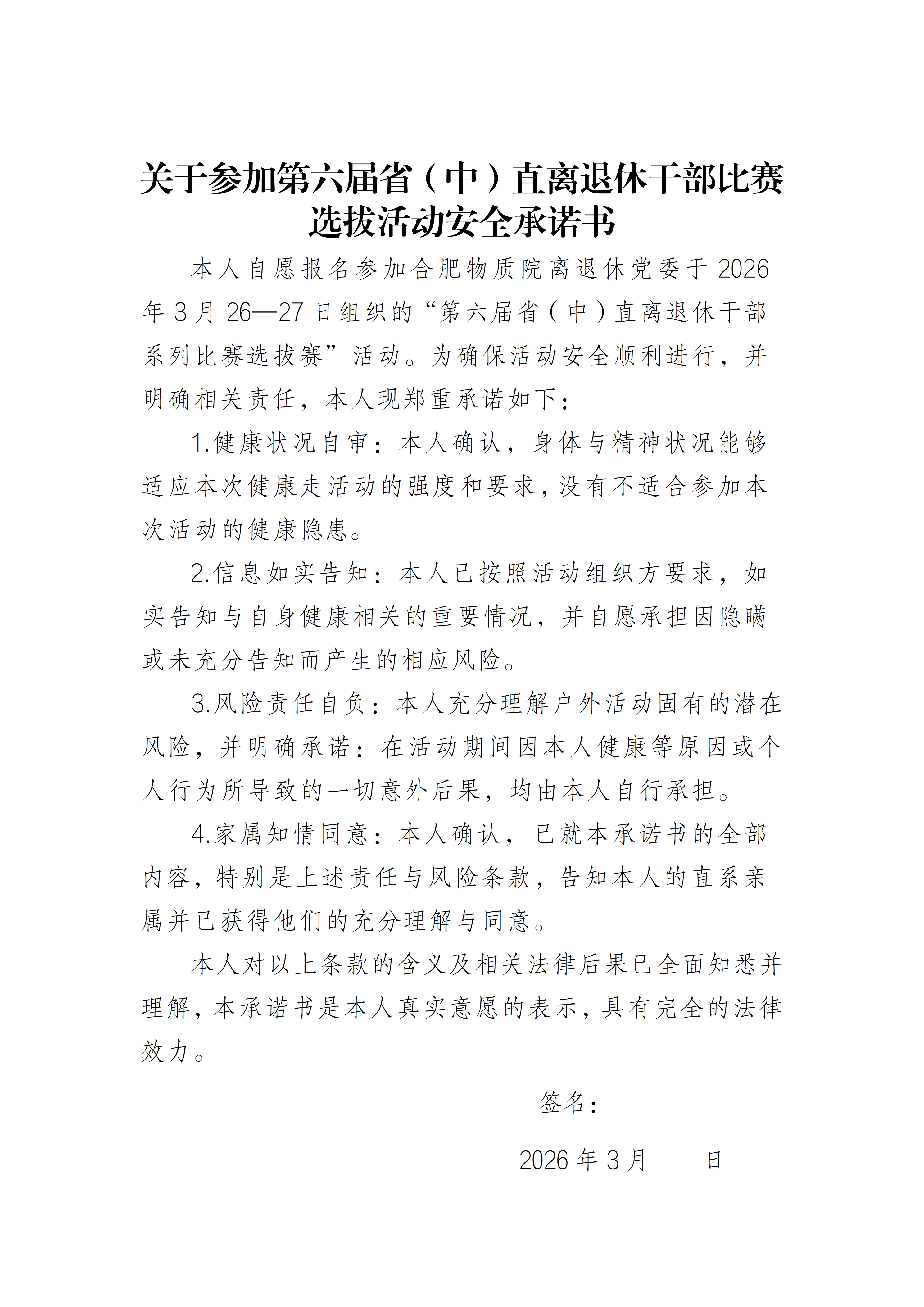 3.所有参赛人员需自愿报名签署《自愿参赛承诺书》。