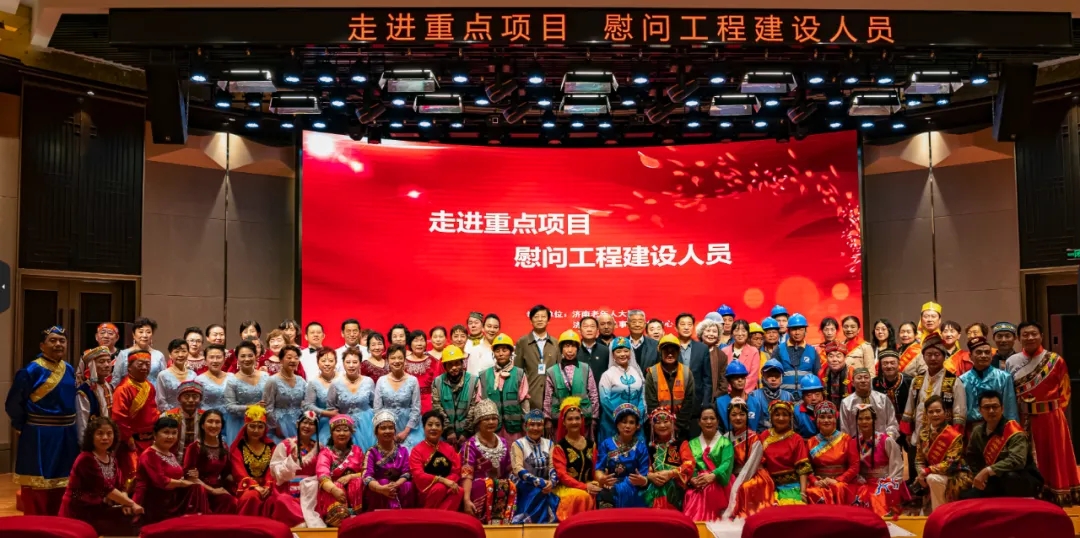 2023年4月27日,济南老年人大学“泉映银龄”志愿服务团开展走进重点项目(济南老年人大学二期新建项目)慰问工程建设人员演出活动。