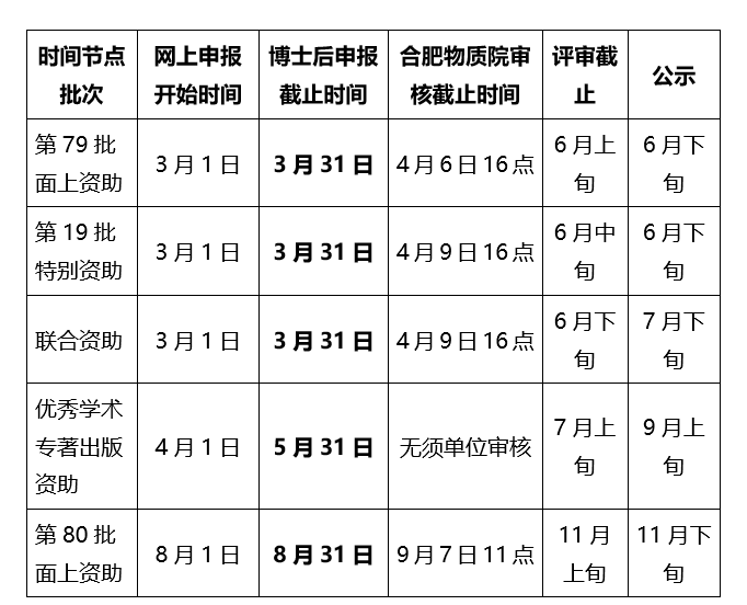 近日,中国博士后科学基金会发布了《中国博士后科学基金资助指南(2026年度)》(见附件),为做好合肥物质院申报工作,现将有关事宜通知如下: