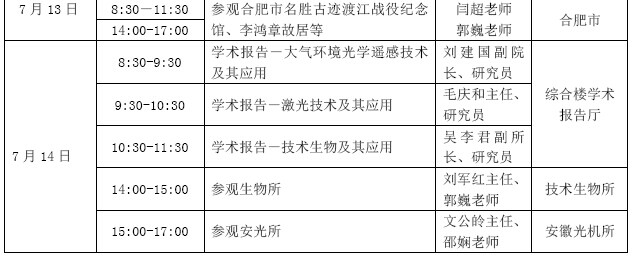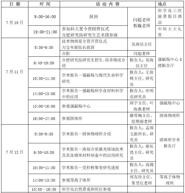 2014年合肥研究院“技术物理夏令营”日程安排