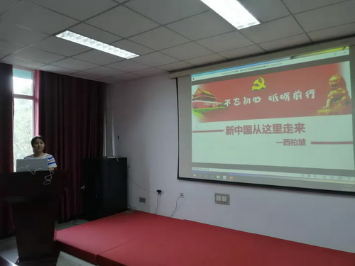 研究生支部书记唐恒芳同志根据前期在西柏坡的党课学习经历,详细介绍了西柏坡时期党的光辉实践,向党员同志传递了西柏坡“万众一心的团结精神”、“自强不息的赶考精神”和“团结进取的大无畏精神”。随后,吴涛同志向大家分享了自己的学习心得与感悟,鼓励党员同志们不忘初心、扎扎实实做科研。