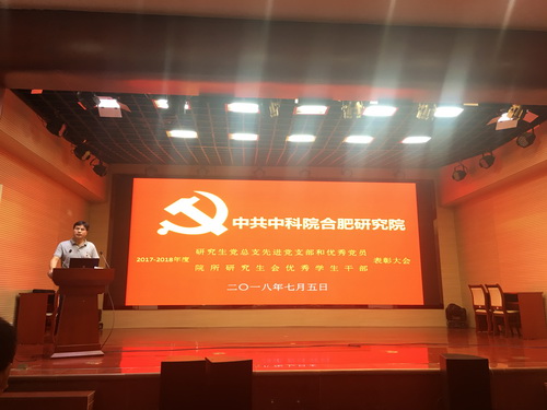 2018年7月5日,研究生党总支组织召开2017-2018年度先进党支部、优秀党员及院所研会优秀学生干部表彰大会,各支部书记、支委委员、院所研会学生干部出席会议。大会表彰了7个研究生先进党支部,2个优秀研究生会,1个研究生优秀协会,37名研究生优秀党员和54名优秀学生干部。会议由研究生党总支宣传委员罗跃光主持。