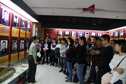 同学们首先参观了金寨县革命博物馆。在博物馆工作人员的讲解下,同学们深切感受到现在的和平生活来之不易。在庄严肃穆的烈士纪念碑前,同学们一起敬献花篮并默哀致敬。随后,面对党旗,党员同志们举起右手重温入党誓词。