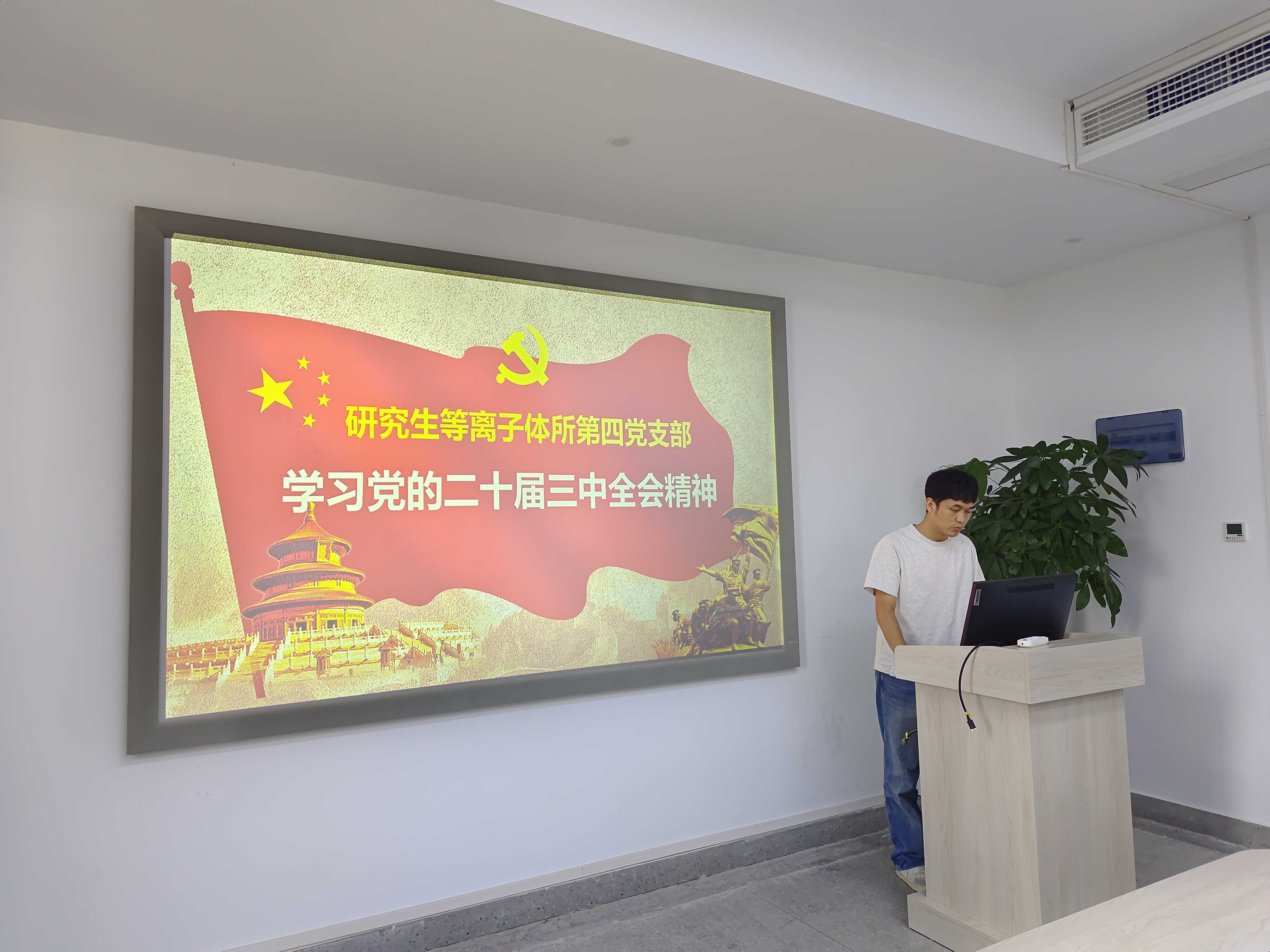 研究生等离子体所第四党支部于9月13日下午在四号楼四楼会议室开展“深入学习领会党的二十届三中全会精神”主题党日活动。活动由支部书记张海彪主持。