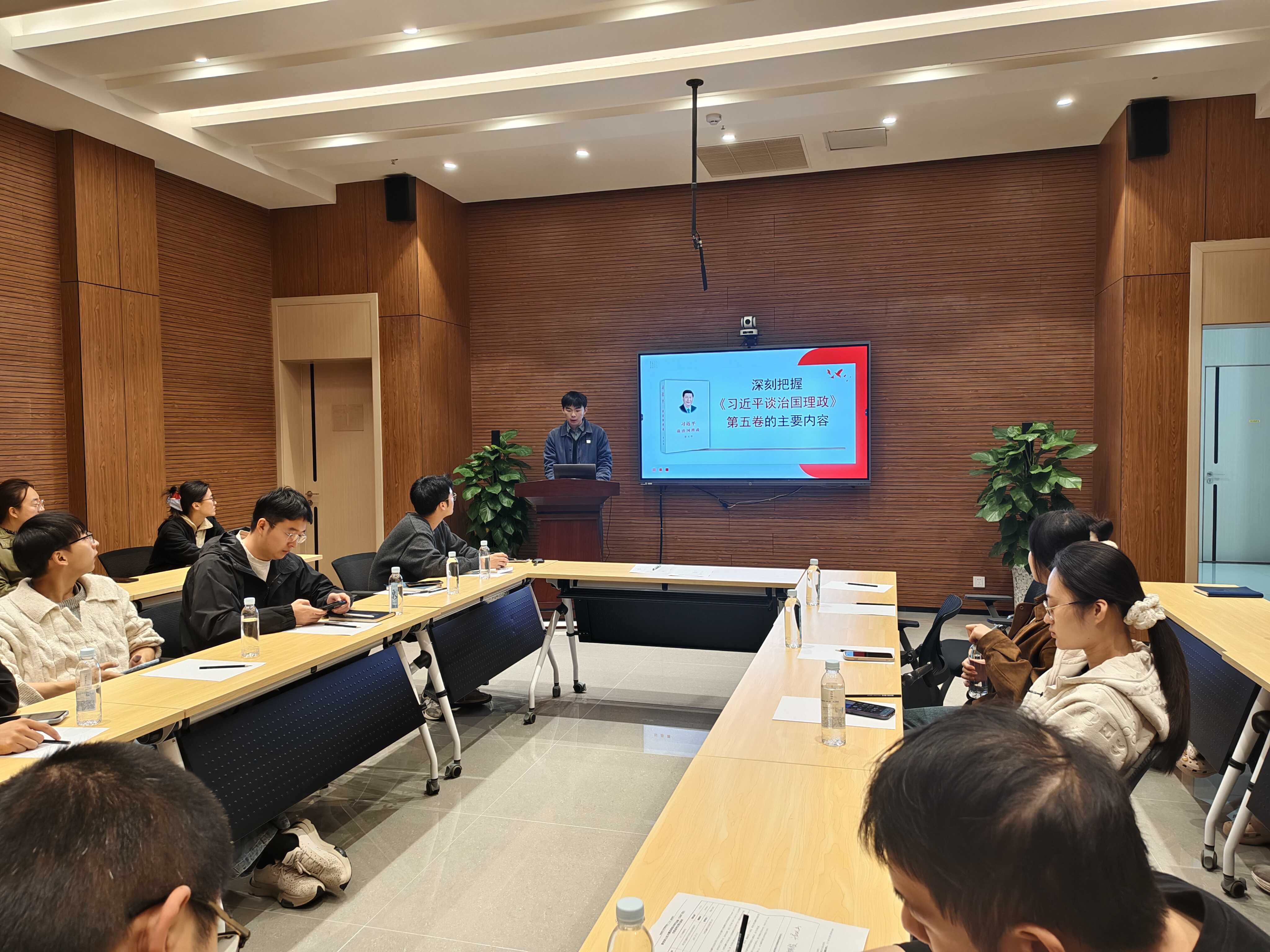 党支部书记吴逸飞指出,第五卷是新时代新征程的“方向标”,“动力源”,并在会议结束现场布置撰写一篇学习书面报告,让党员同志们思考总结理论收获。