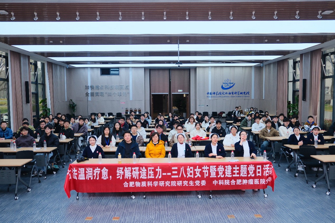 为进一步关爱研究生身心健康,普及健康知识,值此“三八”国际劳动妇女节来临之际,3月11日,合肥物质科学研究院研究生党委联合中国科学院肿瘤医院党委,携手院研究生会,研究生安光所第一、三党支部,强磁场中心第二、三党支部及健康所第一党支部,开展“古法温润疗愈,纾解研途压力”主题党日活动,以科普宣讲+护理体验的形式,将优质健康服务送到同学身边,切实提升研究生健康意识与自我保健能力。