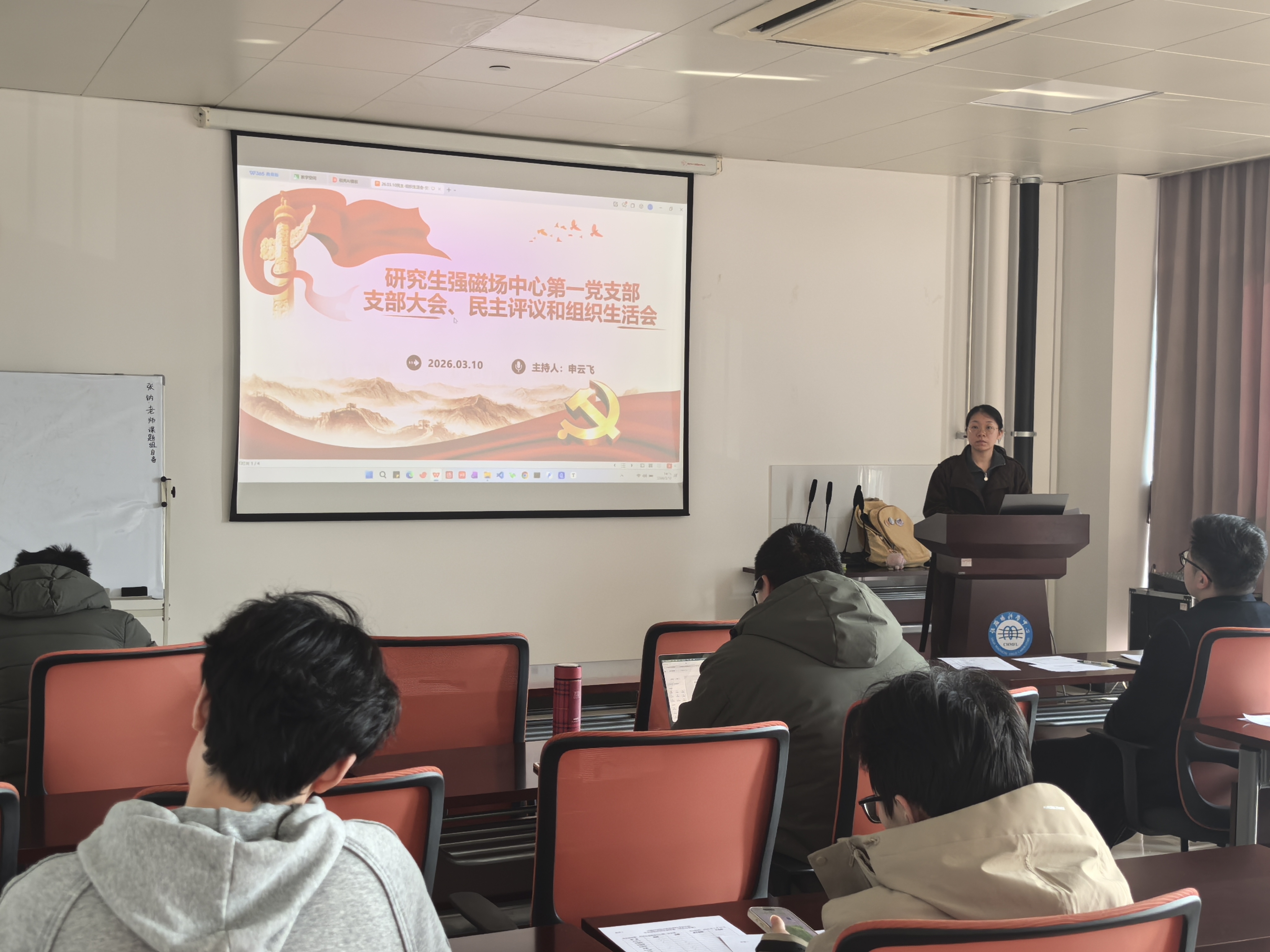 3月10日下午,研究生强磁场中心第一党支部在交叉科研楼207会议室召开组织生活会和民主评议会,并组织开展主题党日活动,集体观看纪录片《我们的雷锋》。会议由党支部书记申云飞主持,支部全体党员参加会议。