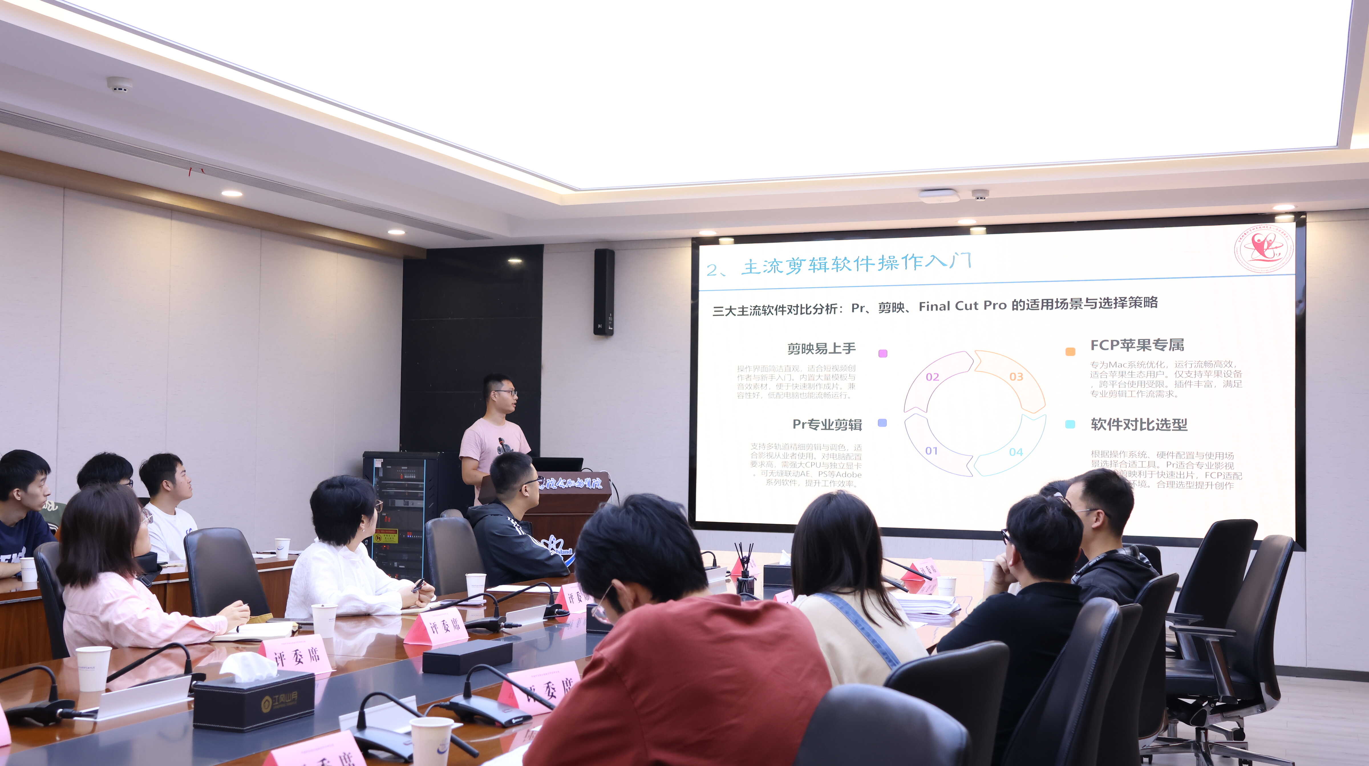 随后,社徽原创设计者2023级安徽光机所博士生李仁仕作视频剪辑培训。通过翔实案例背后的连夜反复修改、逐帧切换打磨,九改不悔、终至定版;引导同学们体悟不断突破、精益求精的做事品质和技术尚可学、心志须坚毅的自我要求精神。