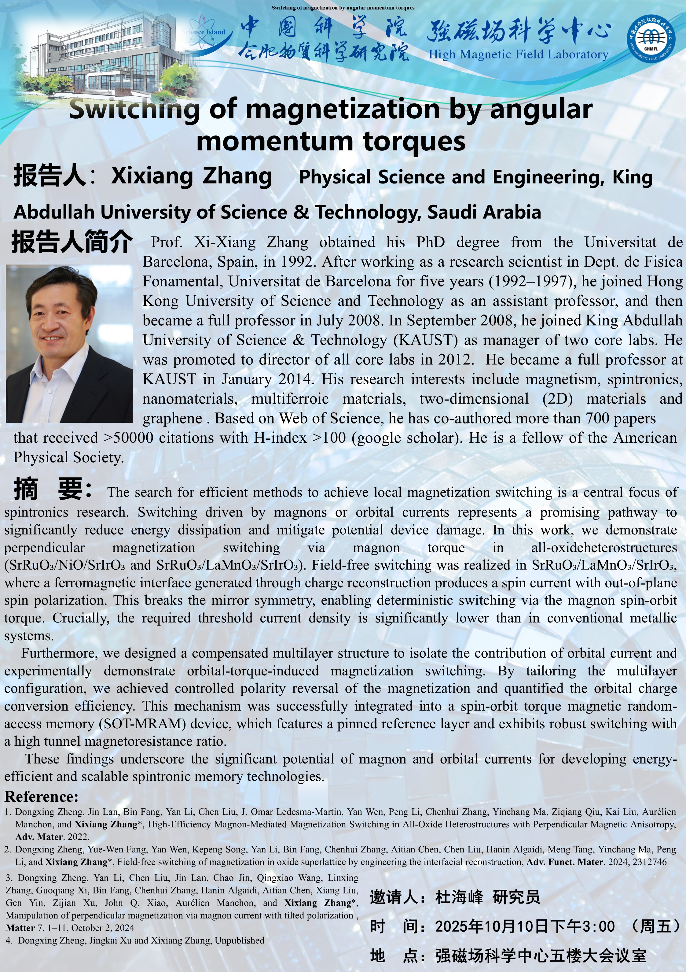 【10.10】学术报告:Switching of magnetization by angularmomentum torques