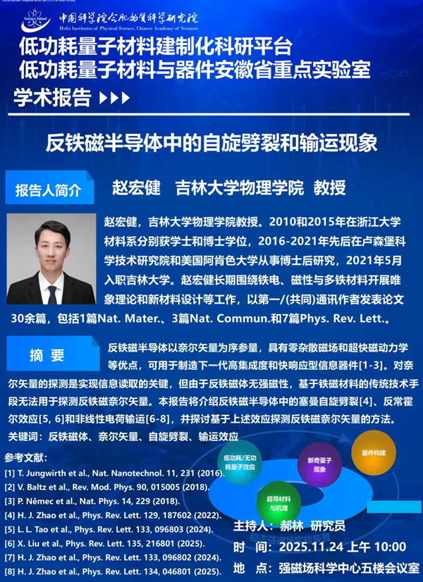 【11.24】学术报告:反铁磁半导体中的自旋劈裂和输运现象