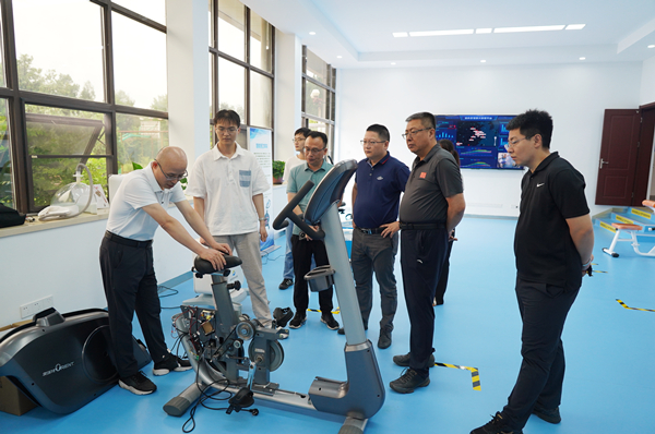 会前,曹景伟一行前往科学岛健康促进中心,观看了运动与健康团队自主研发的系列化智能健康测评与科学健身关键技术装备,并现场查看了运动负荷非线性测定恒功率车的研发进展、以及能量代谢测量设备的演示运行情况等。
