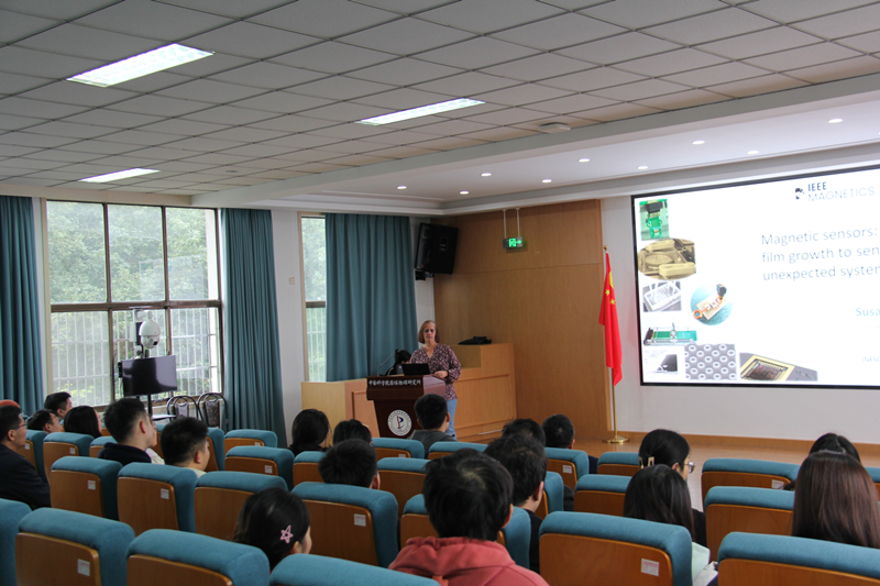 Susana Cardoso de Freitas副教授在报告中简要介绍了巨磁电阻效应、隧道磁阻效应等自旋电子学效应的物理机制,并详细阐述了利用上述效应的磁传感器的工作机制、研究现状和面临的挑战。报告中她期待更多年轻学者参与到磁学领域的研究,开拓磁学研究新方向。报告结束后,Susana Cardoso de Freitas副教授参观了固体所科技成果展厅,双方围绕国际学术交流、人才培养和科技成果转化等方面展开深入交流探讨。