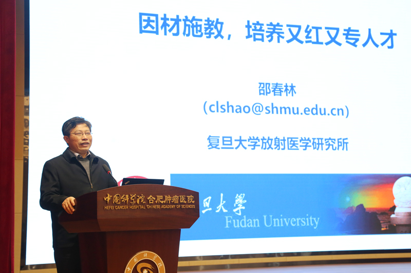 12月1日下午,复旦大学放射医学研究所所长邵春林教授访问中国科学院合肥物质院健康所,并作为“医路研谈”大讲堂第九讲的报告人,在中国科学院合肥肿瘤医院多功能学术报告厅作了题为“因材施教,培养又红又专人才”的报告。健康所科研人员、研究生和肿瘤医院临床医务人员等200多人参会学习,健康所所长刘青松研究员主持报告会。