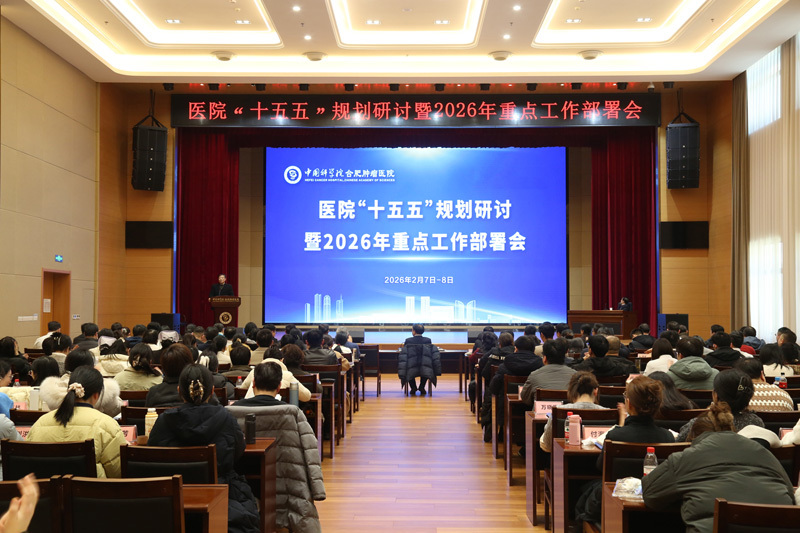 2月7日-8日,合肥肿瘤医院召开“十五五”规划研讨暨2026年重点工作部署会,专题传达学习中国科学院2026年度工作会议精神,研究部署贯彻落实举措。医院党政领导班子成员、全体管理干部等200余人参加会议,会议由健康所党委书记,合肥肿瘤医院党委书记、院长王宏志主持。