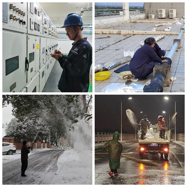 降雪前夕,服务中心迅速启动应急处置预案。组织人员对高低压配电柜、变压器等供电设施逐一排查,对供水管网及暴露管道采取包裹保温措施,严防设施冻损。清点并补充融雪剂、铁锹等物资,检修铲雪车、融雪剂撒布车等大型设备,确保应急保障物资充足。降雪期间,加大园区环境巡查力度,重点排查建筑物屋顶、广告牌、空调外机等高空设施安全,及时清理树冠积雪,防止树枝断裂引发安全事故。