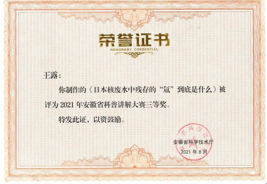 日前,安徽省科普讲解大赛落下帷幕,中科院合肥研究院等离子体所3名参赛选手在本次比赛中取得佳绩。许蕾的《走进核聚变》被评为二等奖,王露的《日本核废水中残存的“氚”到底是什么》被评为三等奖,石晓钟的《我的梦—聚变梦》被评为优秀奖。