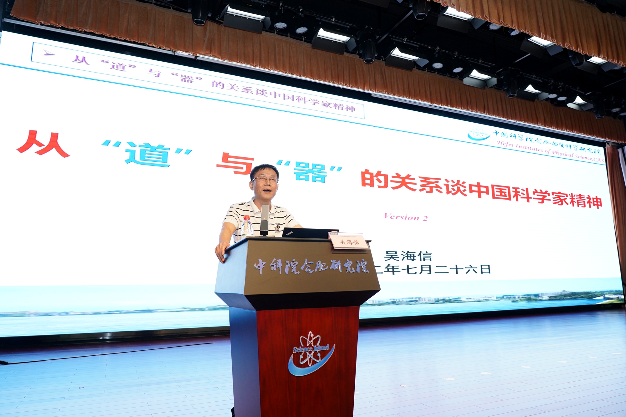 为深入学习贯彻新时代人才强国战略重要思想,以中国科学家精神感召鼓舞、团结引领职工建功新时代,7月26日上午,合肥研究院副院长吴海信应邀在科学岛多功能报告厅作了题为《从“道”与“器”的关系谈中国科学家精神》专题讲座。职能处室、直属机构、支撑部门职工及一线科研骨干共计200余人参加讲座。讲座由人事处副处长王辉主持。