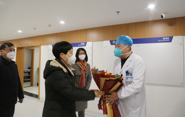 1月3日晚,合肥市蜀山区委书记王海霞带队到蜀山区新冠患者亚定点医院(中国科学院合肥肿瘤医院新院区)看望慰问一线医护人员,中科院合肥研究院院长刘建国、副院长程艳等陪同慰问和探望。