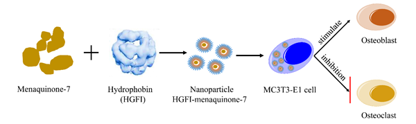 图1 载体蛋白对维生素K2进行亲水改性并促进成骨细胞分化的示意图