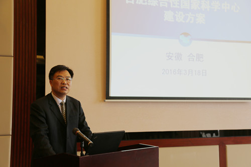 随后,中科院合肥物质科学研究院院长匡光力研究员从建设背景、基础和优势、总体思路、主要任务、保障举措五个方面详细汇报了中心的建设方案。