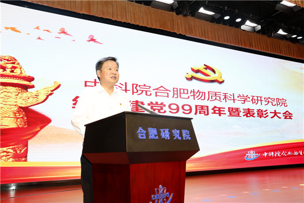 6月23日上午,中科院合肥研究院召开纪念建党99周年暨表彰大会。合肥研究院领导班子成员、党委委员、各级党组织书记,接受表彰的优秀支部、优秀党员、优秀党务工作者、疫情防控先进代表、科研骨干代表、离退休职工代表、学生代表等近400人参加了大会。研究院党委副书记、纪委书记邹士平主持会议。