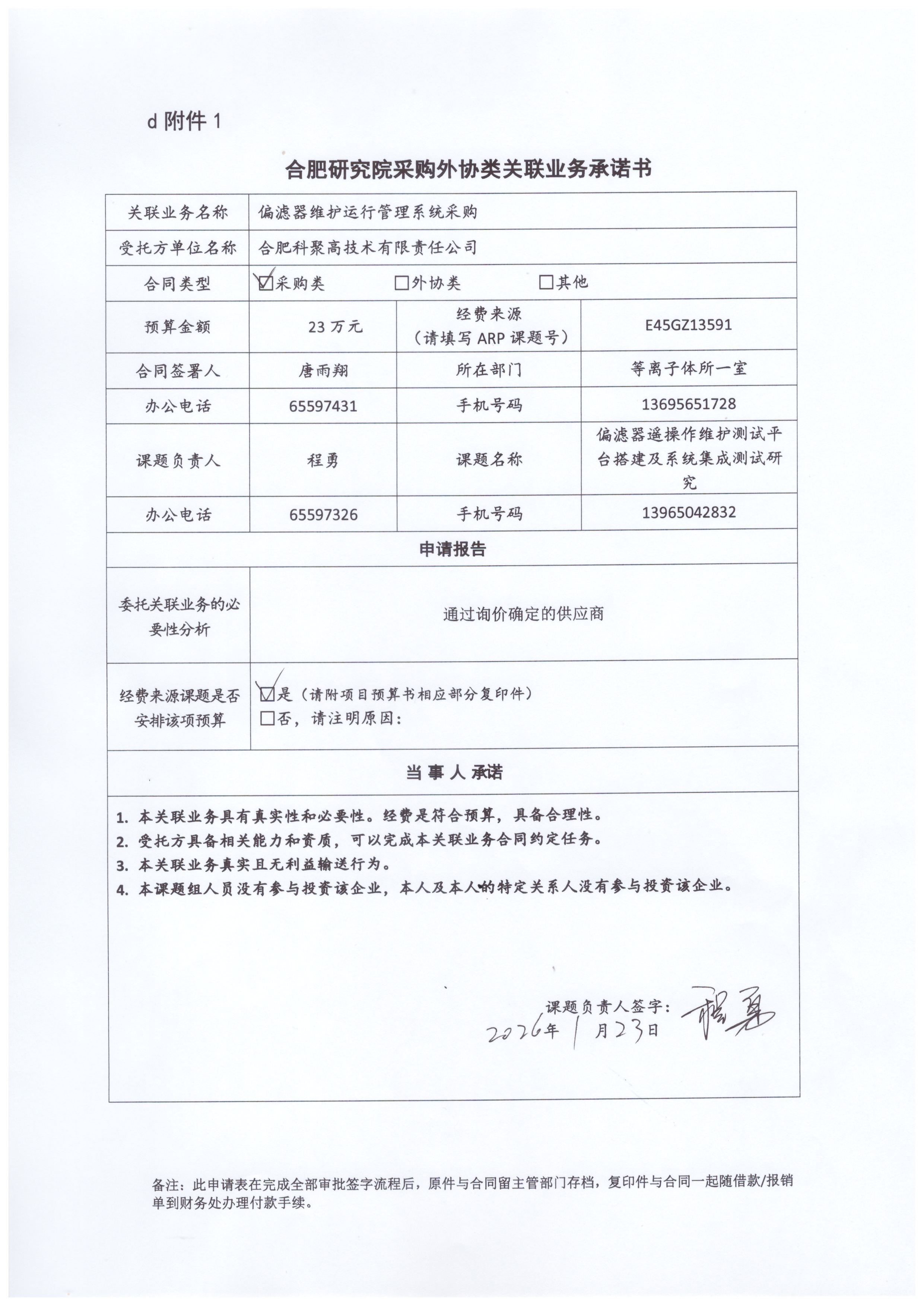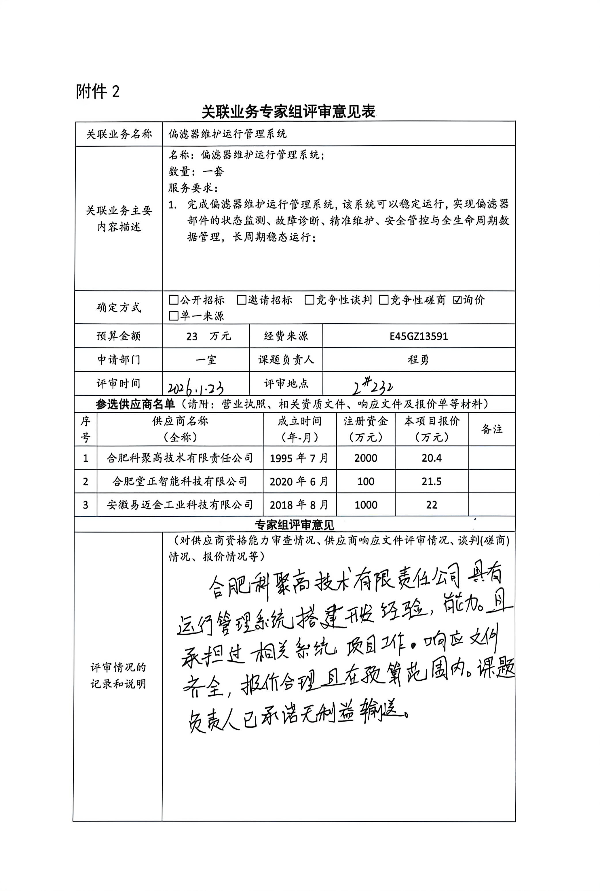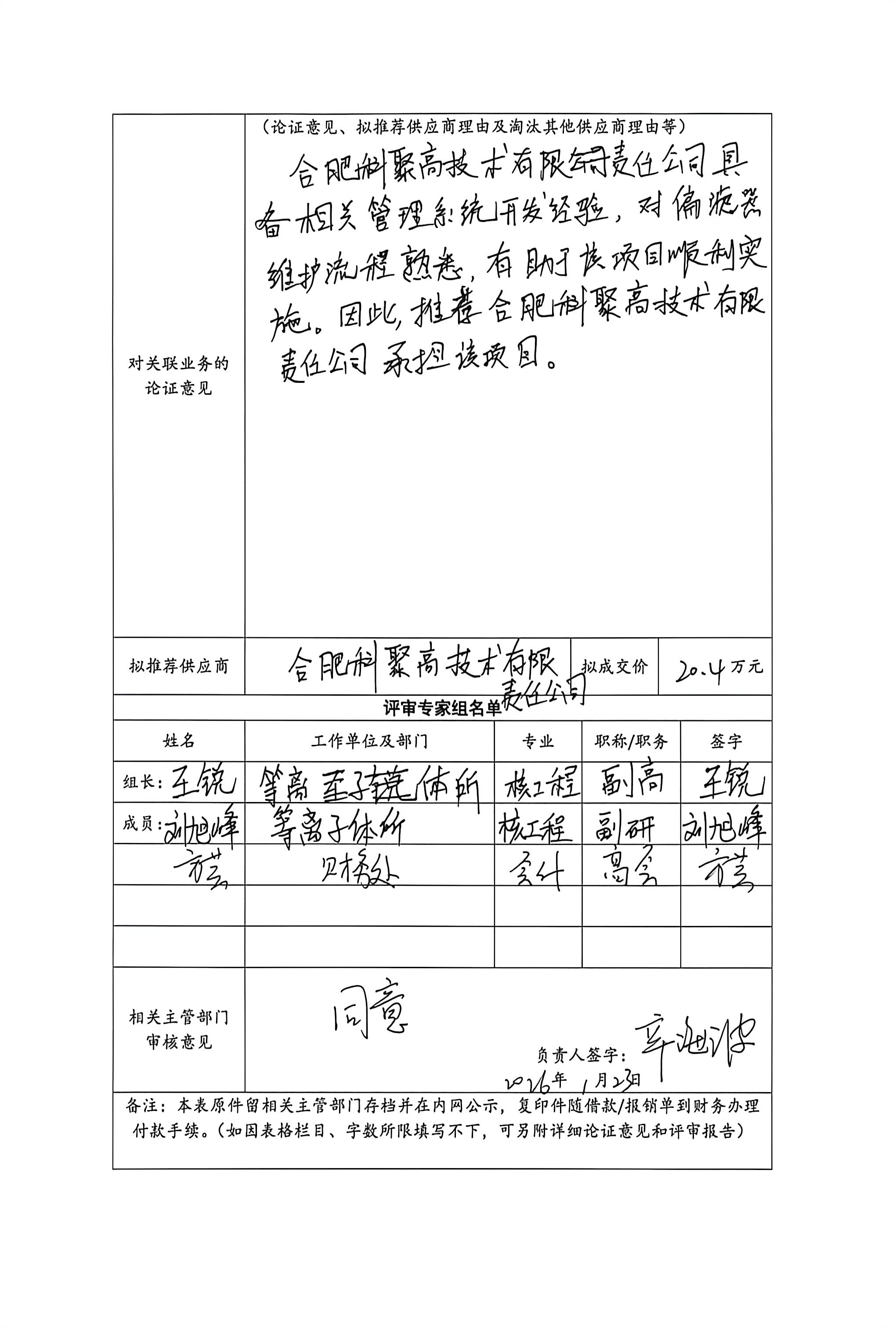 根据《中国科学院关于加强科研项目关联业务管理的暂行规定》(科发条财字〔2015〕125号)、《中国科学院合肥物质科学研究院关于加强科研项目关联业务管理的实施细则》(科合院发资字〔2021〕8号)、《合肥研究院加强关联业务管理暂行办法》(科合院发资字〔2022〕1号)、《合肥物质院加强关联业务管理补充规定》(科合院发资字〔2025〕1号)要求,现就从合肥科聚高技术有限责任公司采购偏滤器维护运行管理系统的关联业务做公示。
