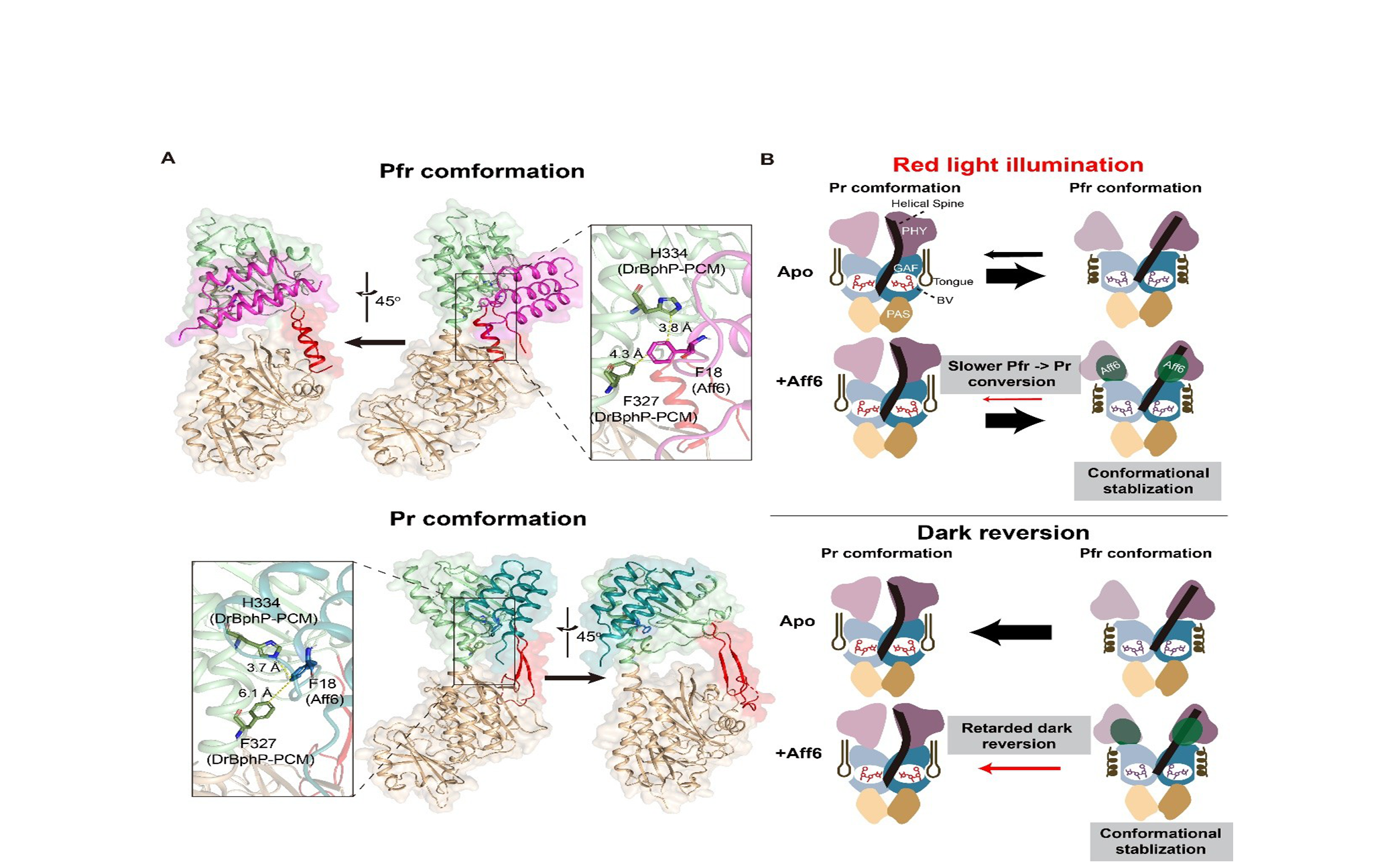 科学岛团队解析红光/远红光光遗传学工具MagRed中DrBphP与Aff6光状态依赖性相互作用...