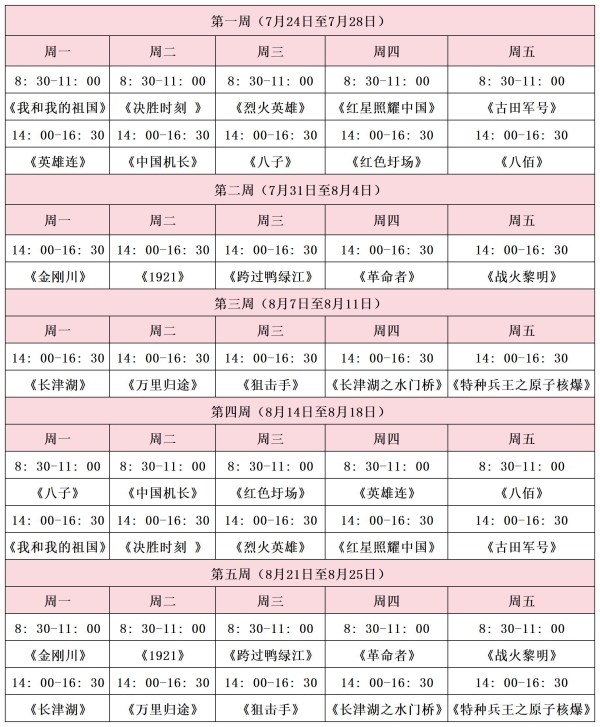 影片以近年来的优秀主旋律影片为主,具体请见观影日程表。各活动站观影时间以多媒体教室时间进行安排。