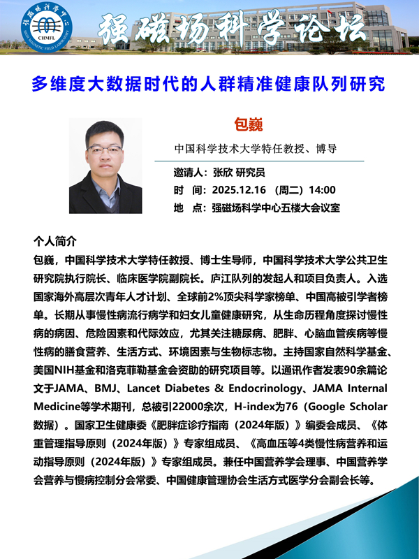 【12.16】学术报告:多维度大数据时代的人群精准健康队列研究