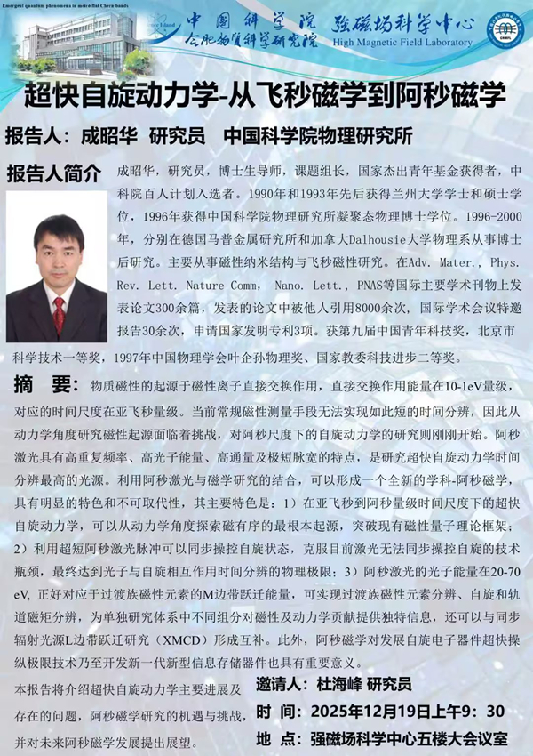 【12.19】学术报告:超快自旋动力学-从飞秒磁学到阿秒磁学