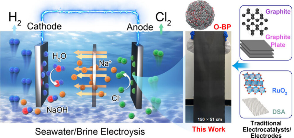 近年来,海水基CO2捕集与矿化技术备受关注。该技术以海水作为唯一反应介质与原料来源,通过海水电解原位调控界面pH与离子迁移,驱动CO2转化为稳定碳酸盐,同步实现海洋矿物资源的高效提取,构建了“CO2捕集与转化-海水资源化利用”一体化技术路径。这项颠覆性负排放技术可为沿海工业及电力系统提供近零碳解决方案,兼具显著生态效益与广阔产业化前景,具有重要科学价值与战略意义。然而,该技术在实际应用中仍面临捕集效率不高、运行能耗偏高、长期稳定性不足等问题。为此,团队从高性能电极材料开发、反应路径优化、原型器件多尺度构建三个核心层面开展系统研究,有效提升了反应动力学和CO2捕集效率,降低了系统能耗和运行成本,并显著增强了系统的长期运行稳定性。